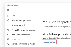 3. Trong phần Virus & threat protection settings, bấm Manage settings (Quản lý cài đặt).